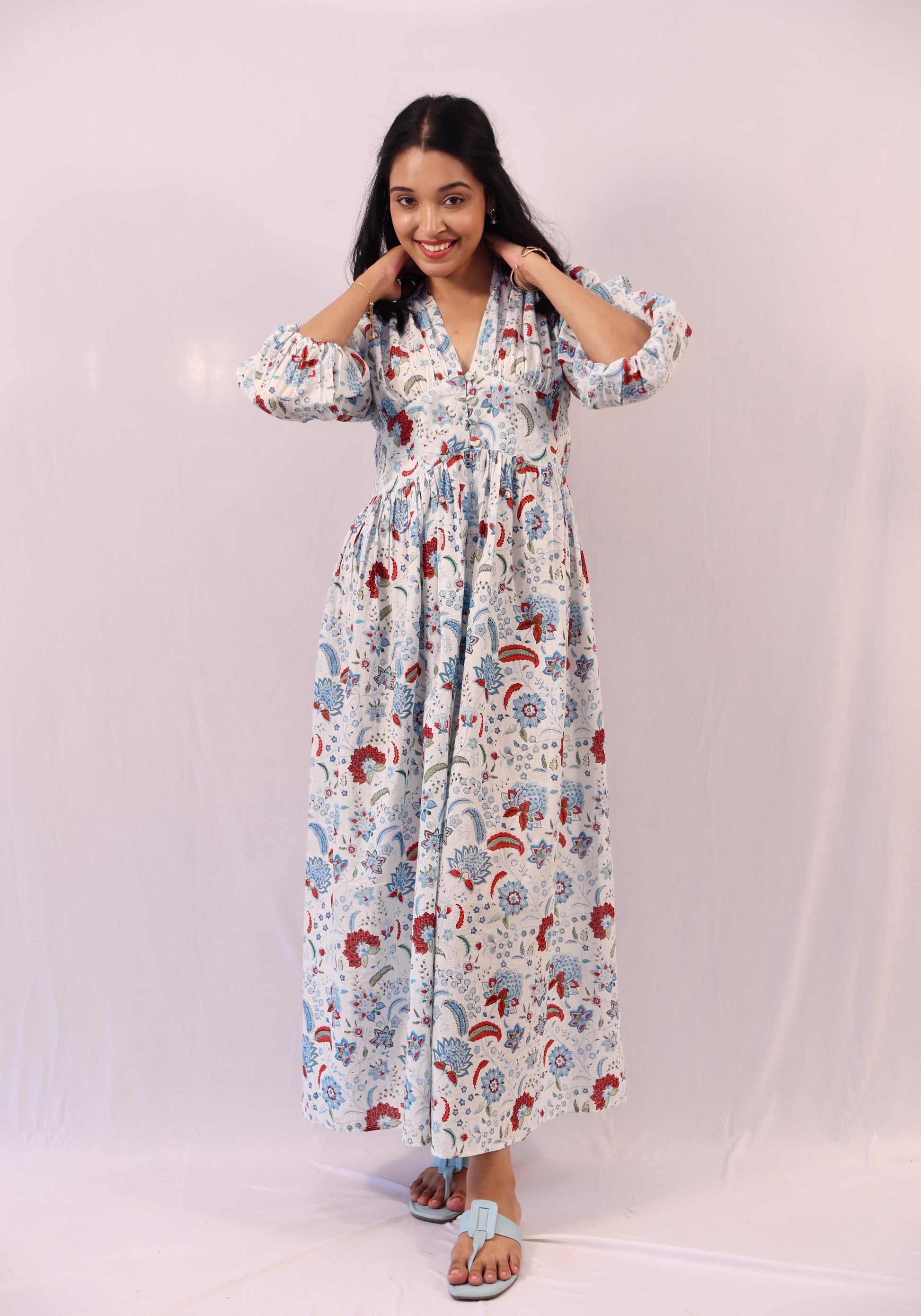Our Pure Cotton Summer Floral Dress: Designed for the perfect fit, it's both dressy and comfortable, ensuring you look and feel your best all day long.