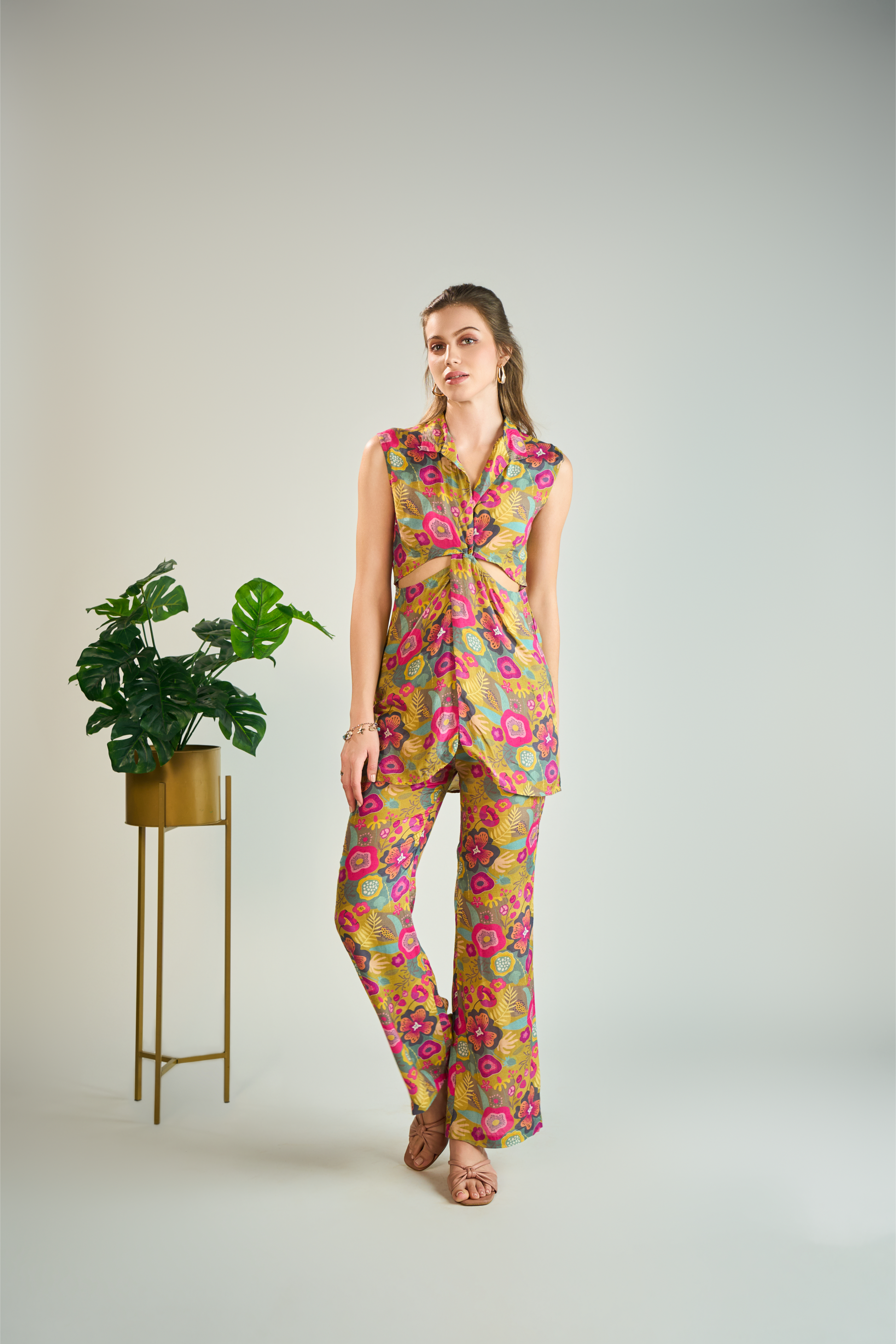 Our Statement Co-ord Set, made from pure Muslin fabric, features a beautiful waist cutout. Light, stylish, and unique it’s the perfect blend.