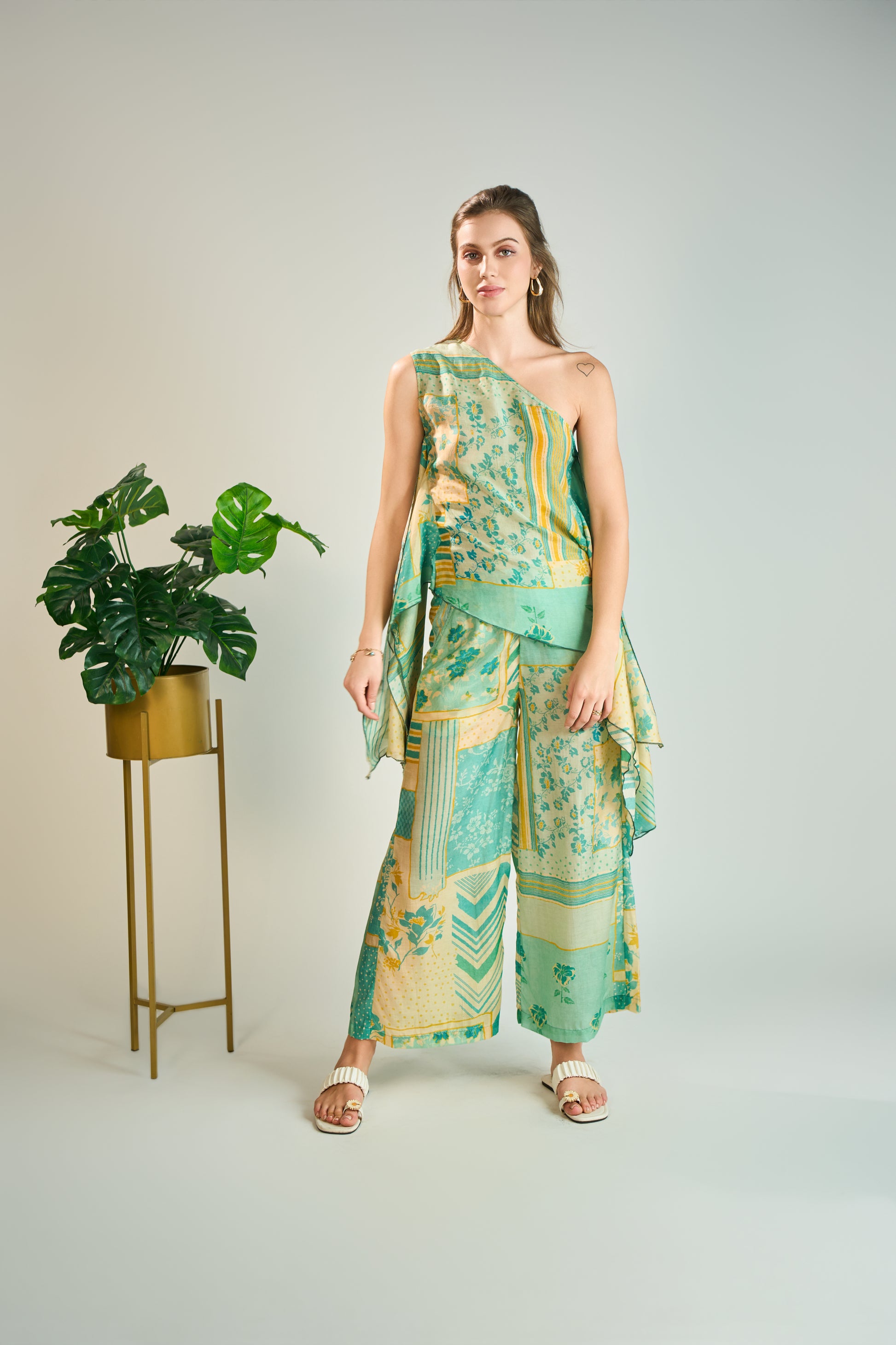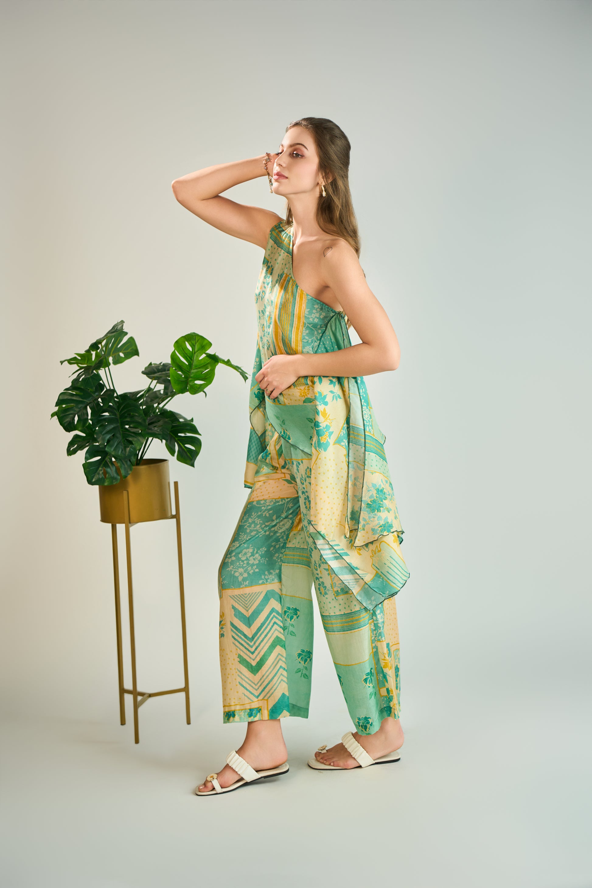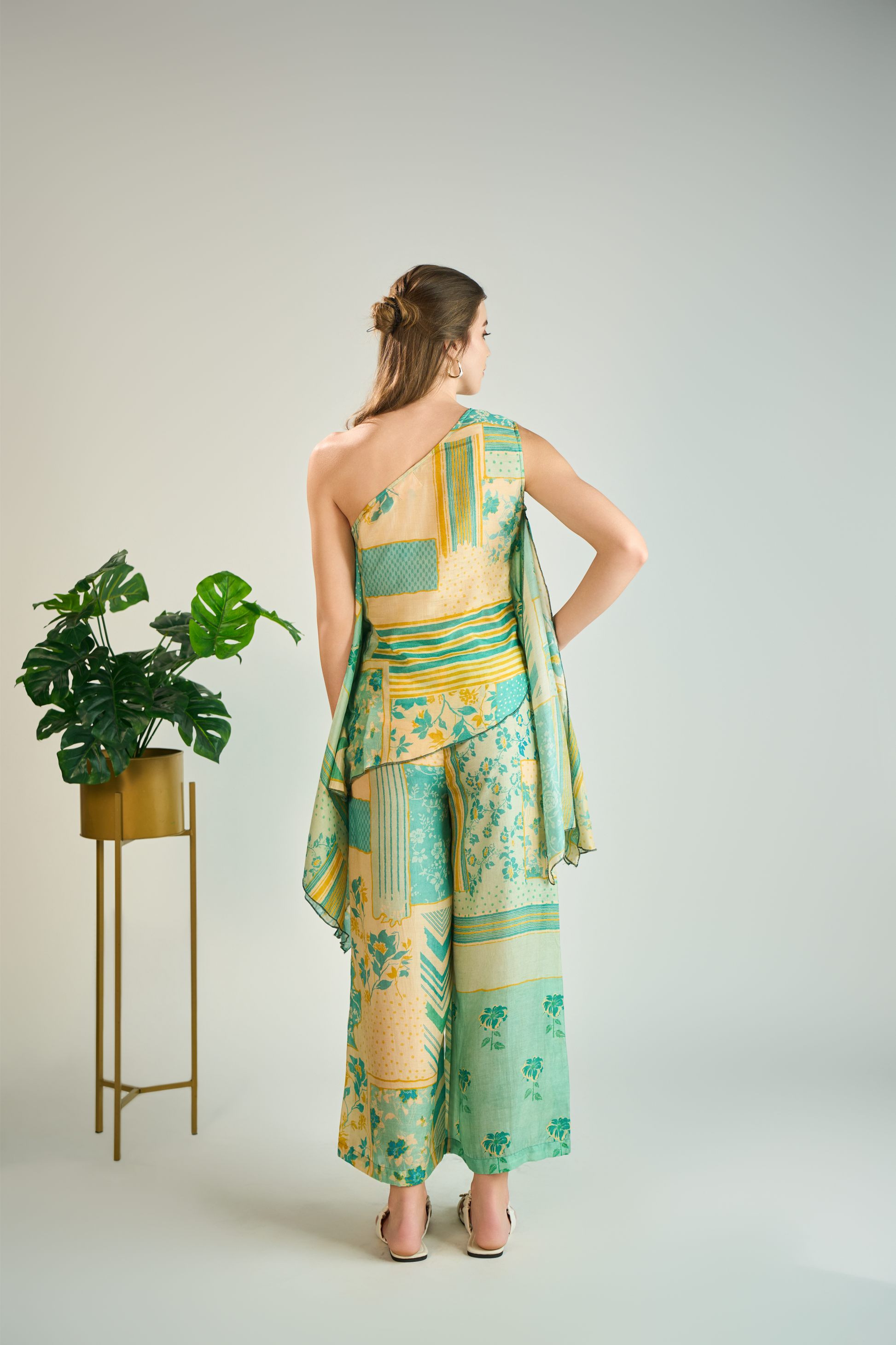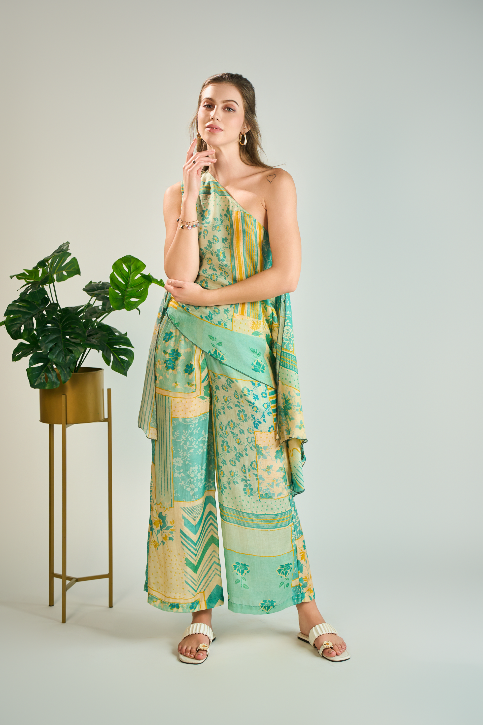 Our Blue Mix Print Co-ord Set, crafted from pure muslin, offers a striking statement look for any event. Effortless style and elegance in one ensemble.