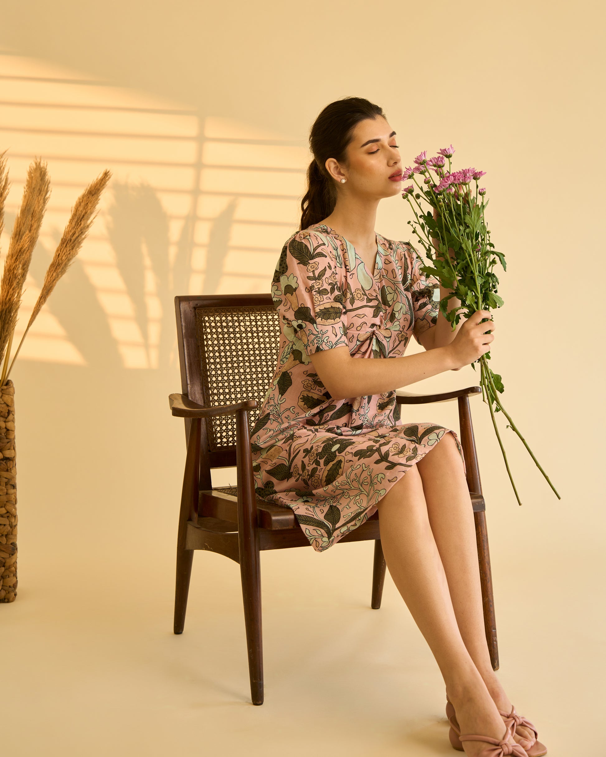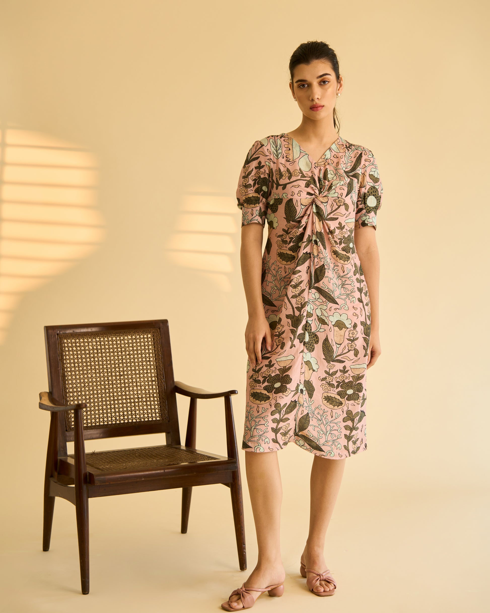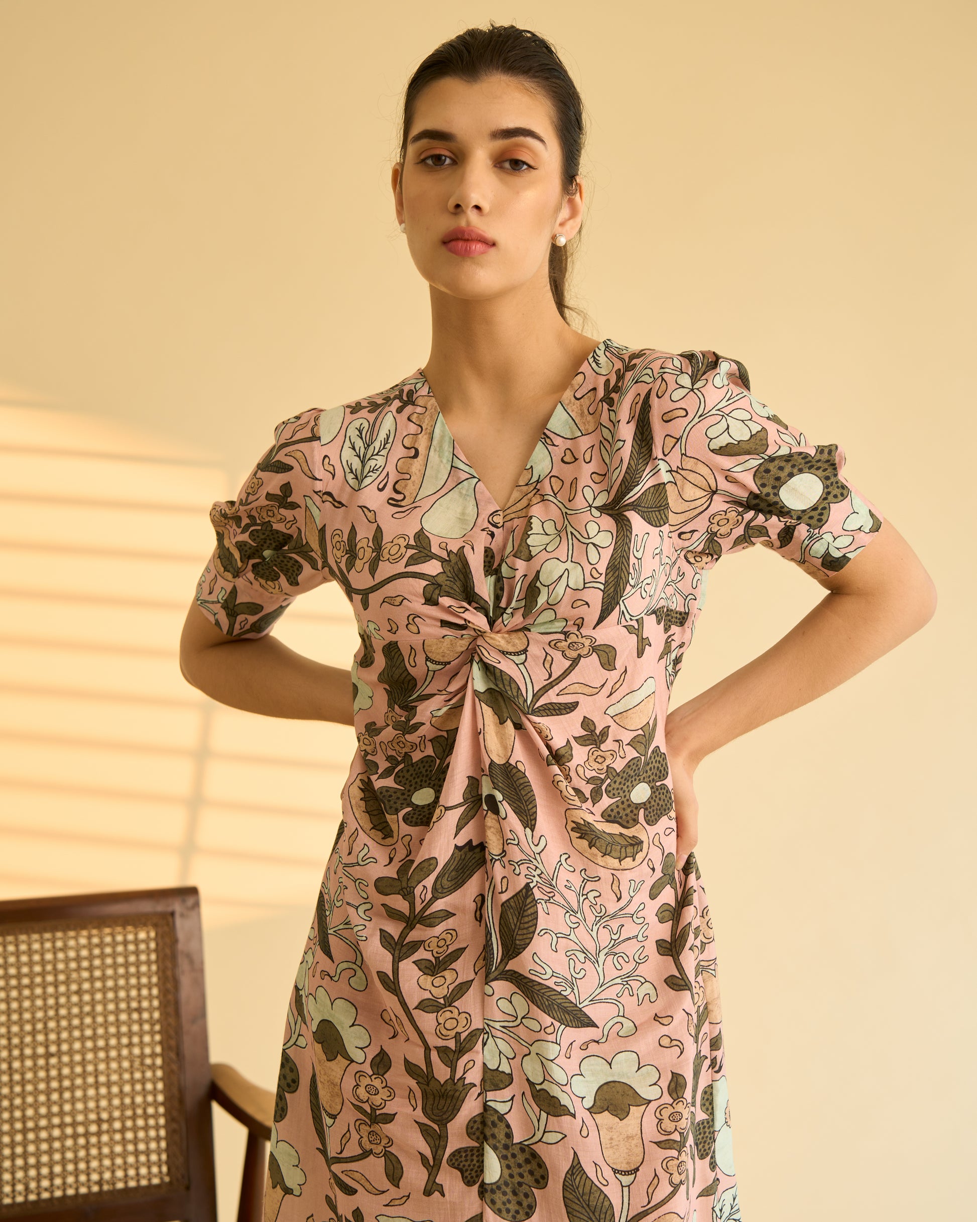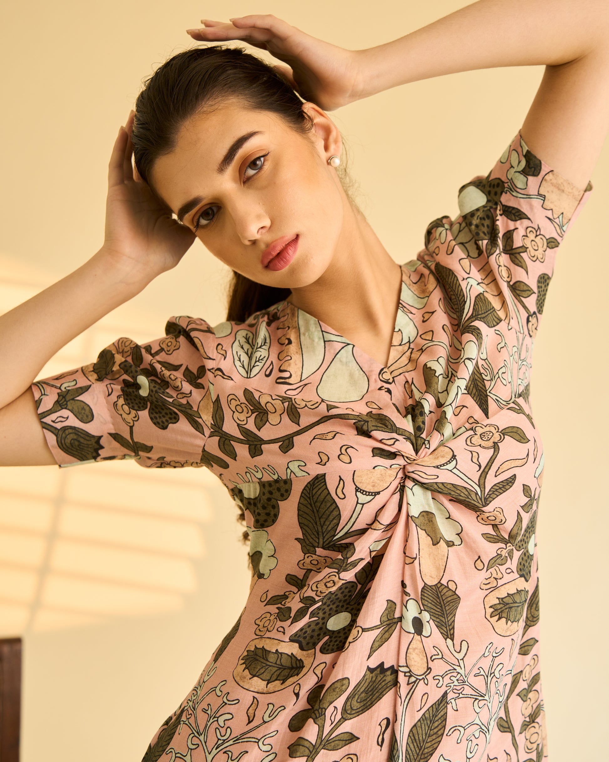 Seize your day in this vibrant muslin dress, featuring a diverse floral print and an offbeat colour combination. The straight fit and charming knot detailing make it a standout piece for any occasion.